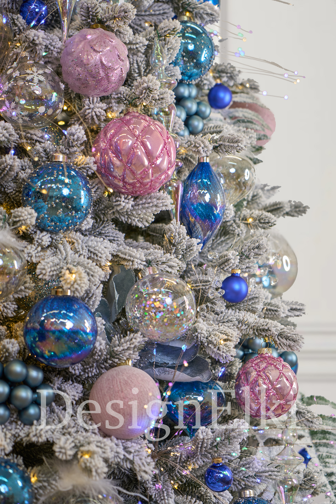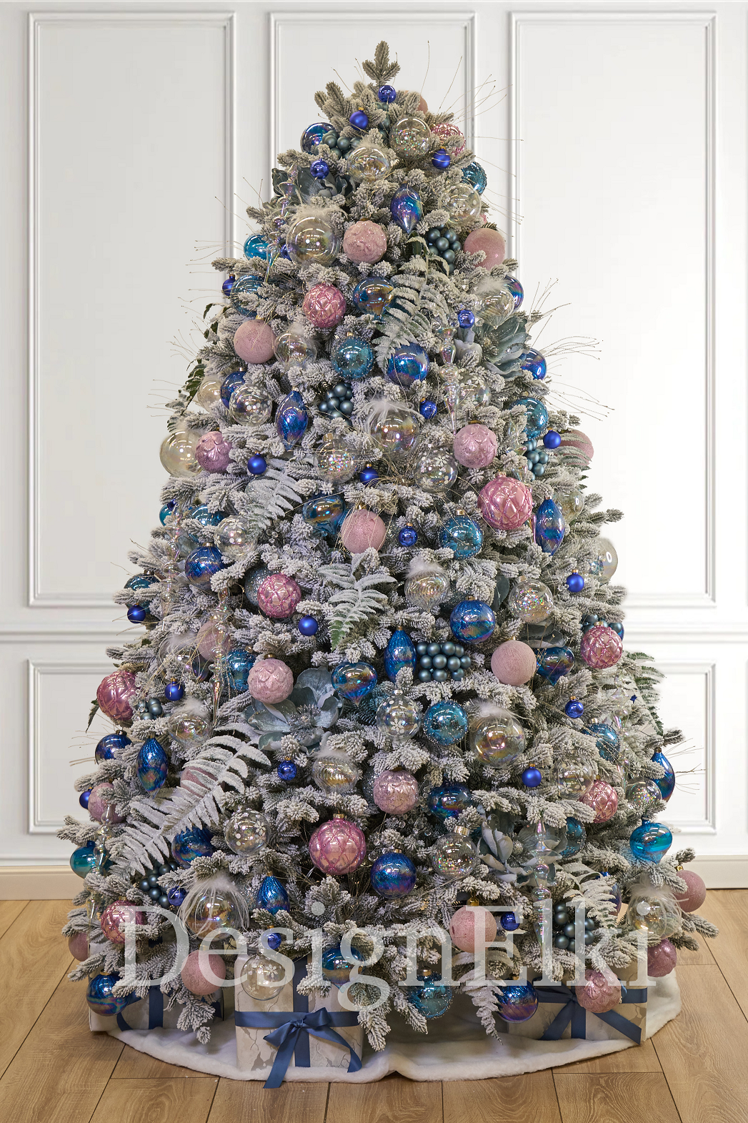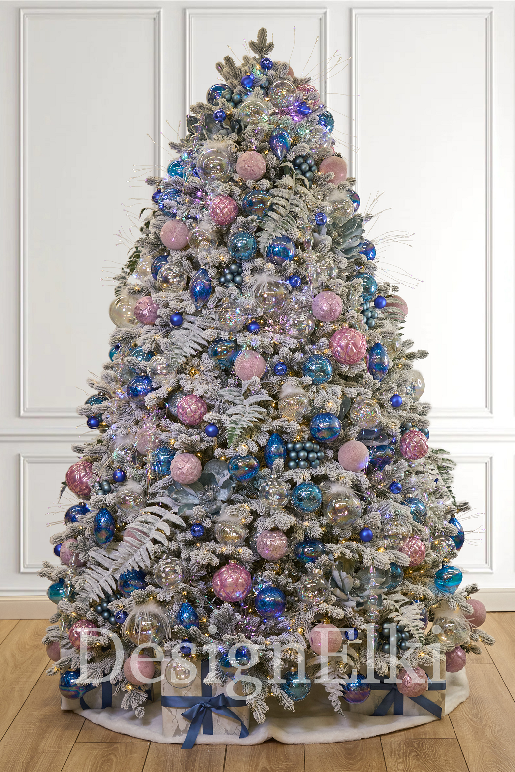 Арктика – таинственный уголок планеты, где в Новый год царит кромешная тьма, нарушаемая лишь всполохами северного сияния. Оно рождается высоко над землей веселым солнечным ветром. Мы бережно собрали крупицы полуночного света и превратили их в оригинальные украшения в розово-синей гамме. Притягивают взгляды хрупкие прозрачные шары и фигурные подвески, переливающиеся всеми оттенками радуги. На гранях фактурных шаров – матовых и глянцевых – мерцают огоньки гирлянд в виде салютов. Елка для неисправимых романтиков и любителей зимних пейзажей. Элегантное деревце украсит дом и пробудит фантазию.