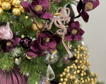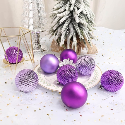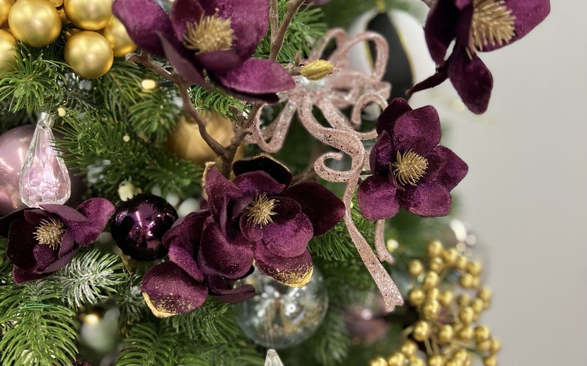 Фиолетовый, темно-пурпурный, аметистовый, сиреневый, баклажановый, сливовый — отличные цвета для нового рождественского образа. Оттенки хорошо сочетаются с сегодняшним серо-тонным декором. Фиолетовые украшения выглядят фантастически на фоне зеленой хвои, если дополнить их аксессуарами в оттенках от лаванды до сливы или добавить нотку гламура при помощи серебра или золота.