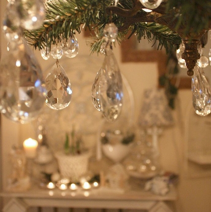 Прозрачные стеклянные и хрустальные украшения сияют как лед, придавая елке праздничный блеск. Этот вполне самостоятельный образ, который также может пополнить любую коллекцию. Таинственные и строгие кристаллы сочетаются с серебристым или ледяным синим цветом. Для дополнительного блеска достаточно повесить отдельные кристаллы или рождественскую гирлянду из хрустальных бусин. Кристалл добавляет изысканности всему праздничному декору — от стеклянной посуды до акцентных элементов.