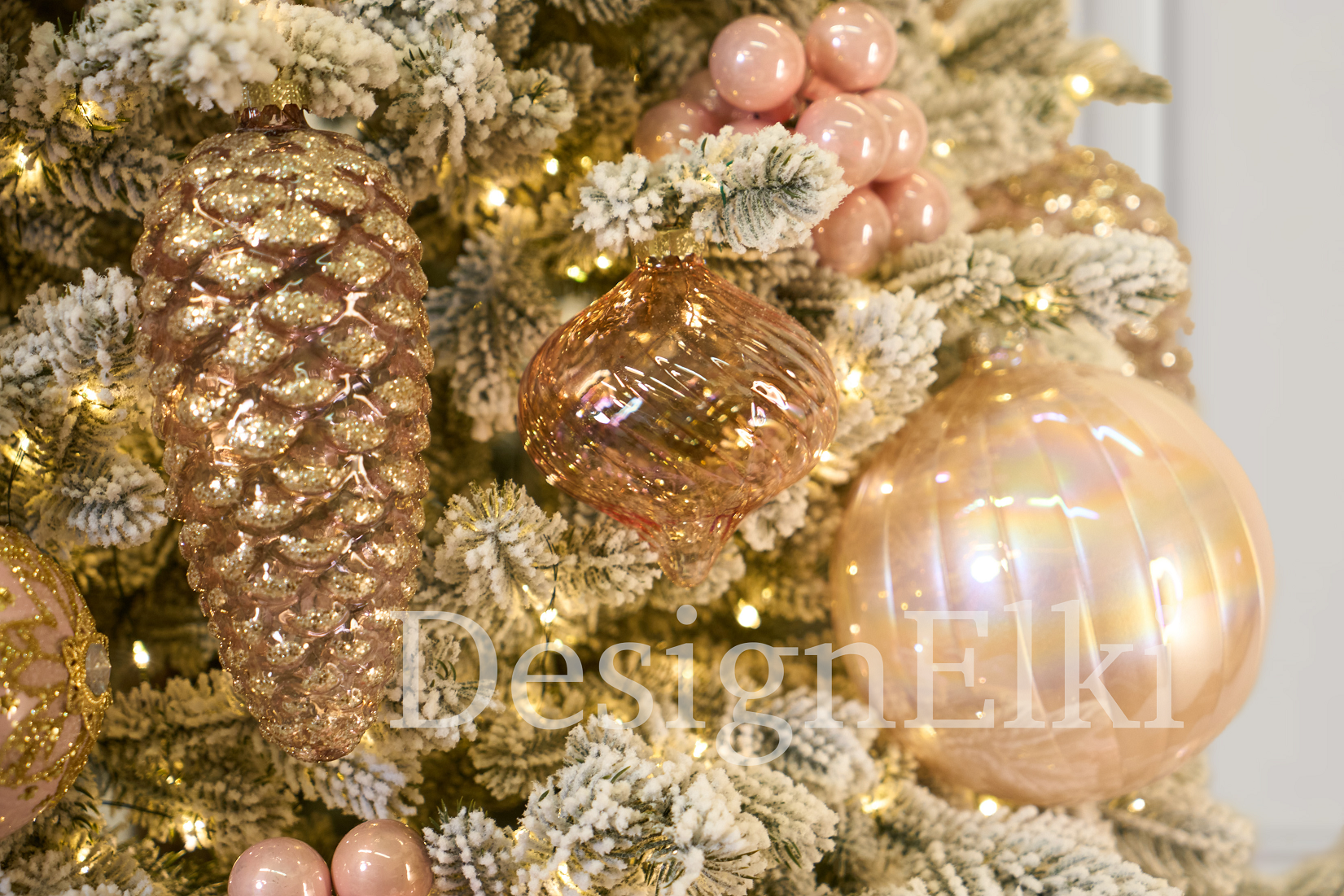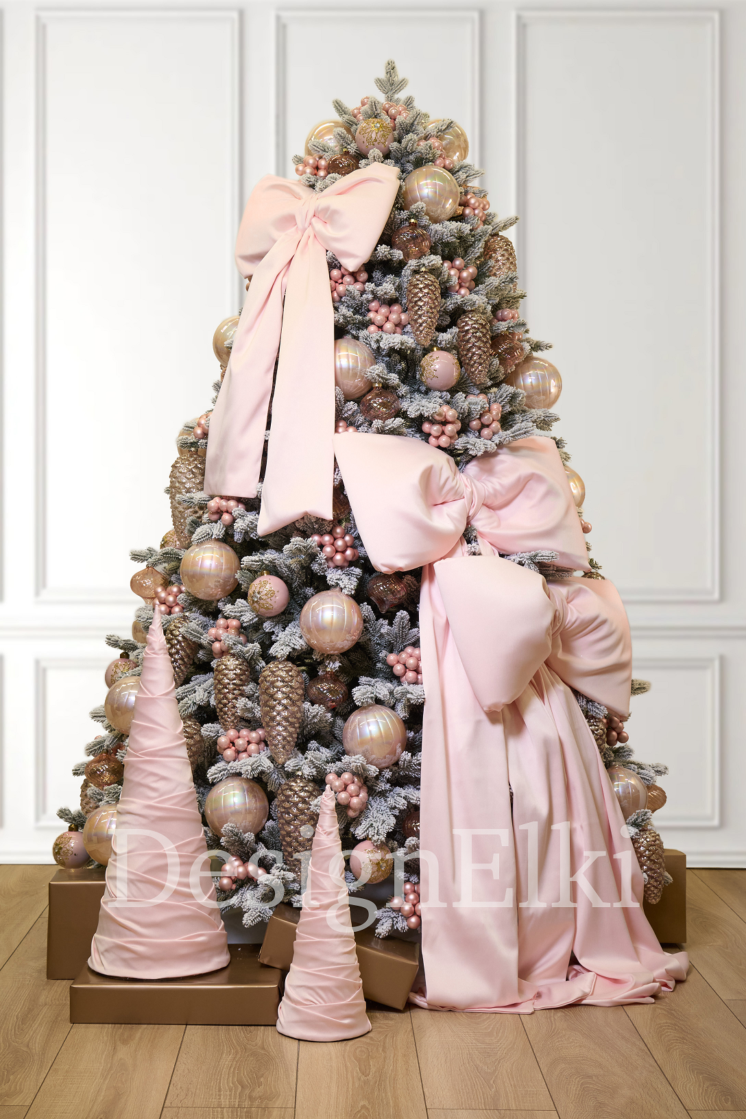 Перед вами — настоящая принцесса зимнего леса. Нежный образ вдохновлен струящимся платьем с большим бантом. Жемчужные шары словно драгоценное ожерелье. Их хрупкая красота перекликается с фактурными шишками из матового стекла. Новогоднее убранство напоминает о вечной красоте, неподвластной времени, и о чуде, которое приходит в самый волшебный месяц года.