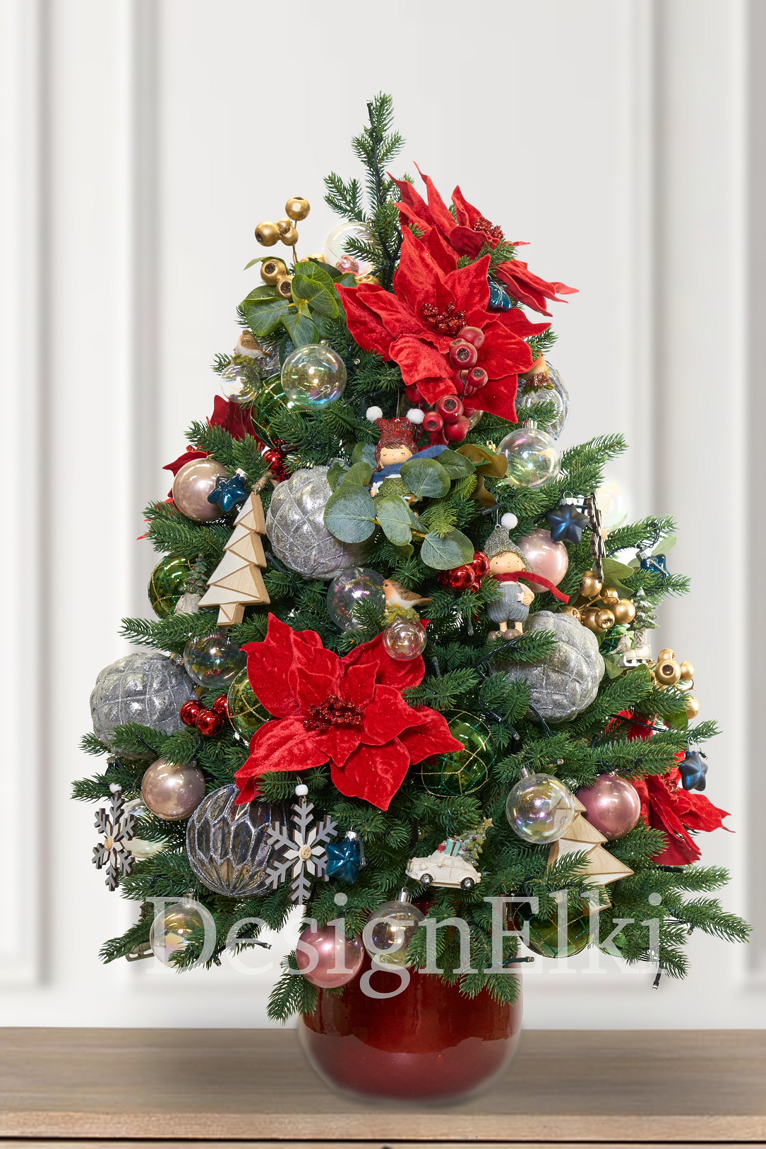 «Зима в Стокгольме» украшена деревянными резными игрушками, стеклянными шарами необычной фактуры, а также забавными фигурками волшебного народца. Декор ели густой и яркий: здесь каждая веточка рассказывает свою чудесную историю. И хотя стройное деревце не занимает много места, праздничное настроение будет в каждом уголке вашего дома.